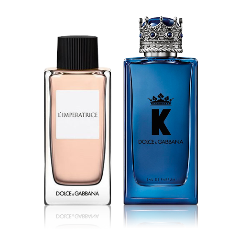 تحتوي هذه المجموعة على:- دولتشي آند غابانا لايمبيراتريس 3 بور فيم - 100 ملصمم للمرأة العصرية، ناعم بتأثير عطر ي لا يضاهى. نوتاته العليا تتميز بانتعاش الفلفل الوردي، وزهور البرتقال الذي ينساب تدريجياً إلى رائحة الفانيلا الرقيقة. يمثل هذا العطر شخصية المرأة الشابة والحيوية.- دولتشي آند غابانا كيه - 100 ملعزز إحساسك الذكوري الرجالي القوي والجريء مع العطر الخشبي الحار الغني بروائح الأخشاب الدافئة مع ذرات الهيل الحارة والمتوهجة ممزوجين بلمسات باردة ومنعشة من اللافندر والمريمية التي تلامس قلبك وتضفي عليه إحساس عالي بالثقة والراحة كما أنه يمنحك مظهر جذاب و للغاية في جميع اجتماعتك الهامة والأمسيات الخاصة وال ، العطر يتمتع بقوة وثبات عالي ليدوم معك حتى اللحظات الأخيرة من اليوم دون أن يتلاشي